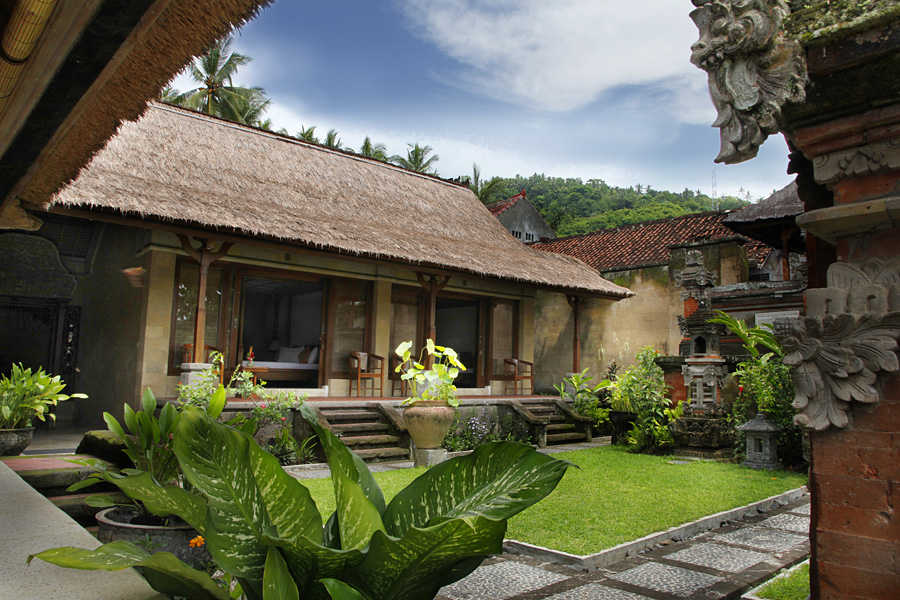Puri Bagus Manggis is a haven of tranquility in the midst of a true Balinese village. Built in traditional architectural style, this original family compound has been transformed into 6 exquisite guest rooms. The thatched roof of the outdoor dining room blends with the natural scenery allowing view of the rural life and the ever-present colorful religious ceremonies.