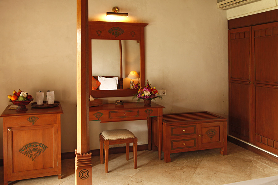 Each Guest Room is furnished with a collection of luxurious Balinese furniture. All rooms include IDD telephone, private mini-bar and open-air garden bathroom.